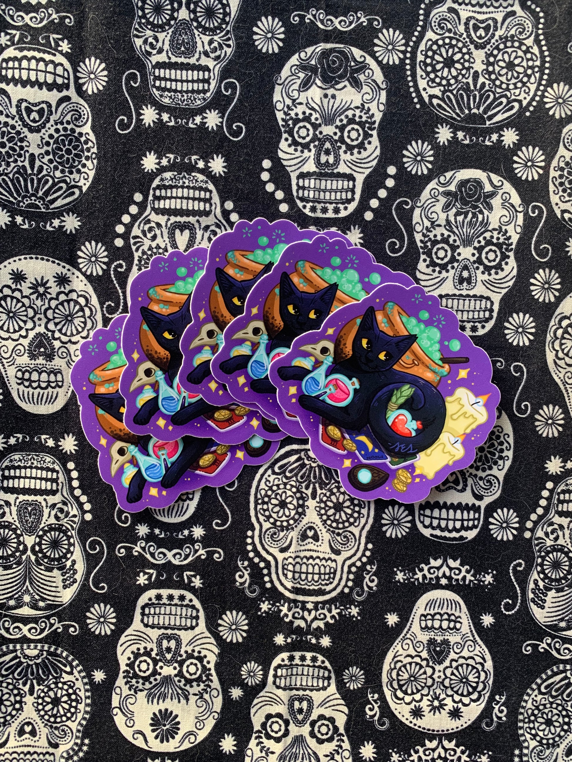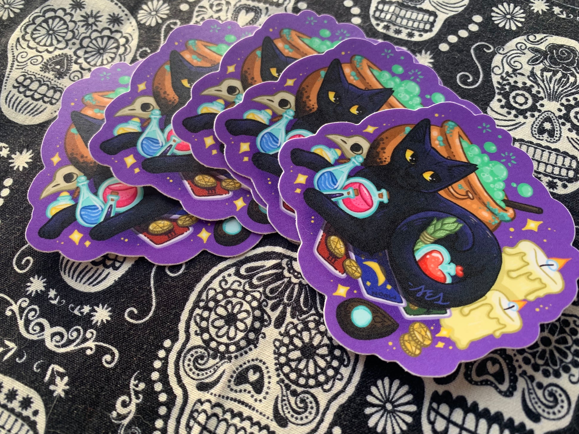 I haven't drawn my evil little cat Midas despite adopting him in 2024, but I finally drew him to celebrate Halloween. What's he cooking in that cauldron? Something mischievous, surely.
