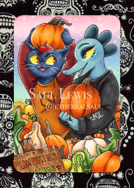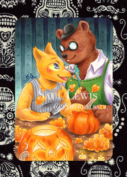 Carving Pumpkins ~ Original Night in the Woods Marker Drawing